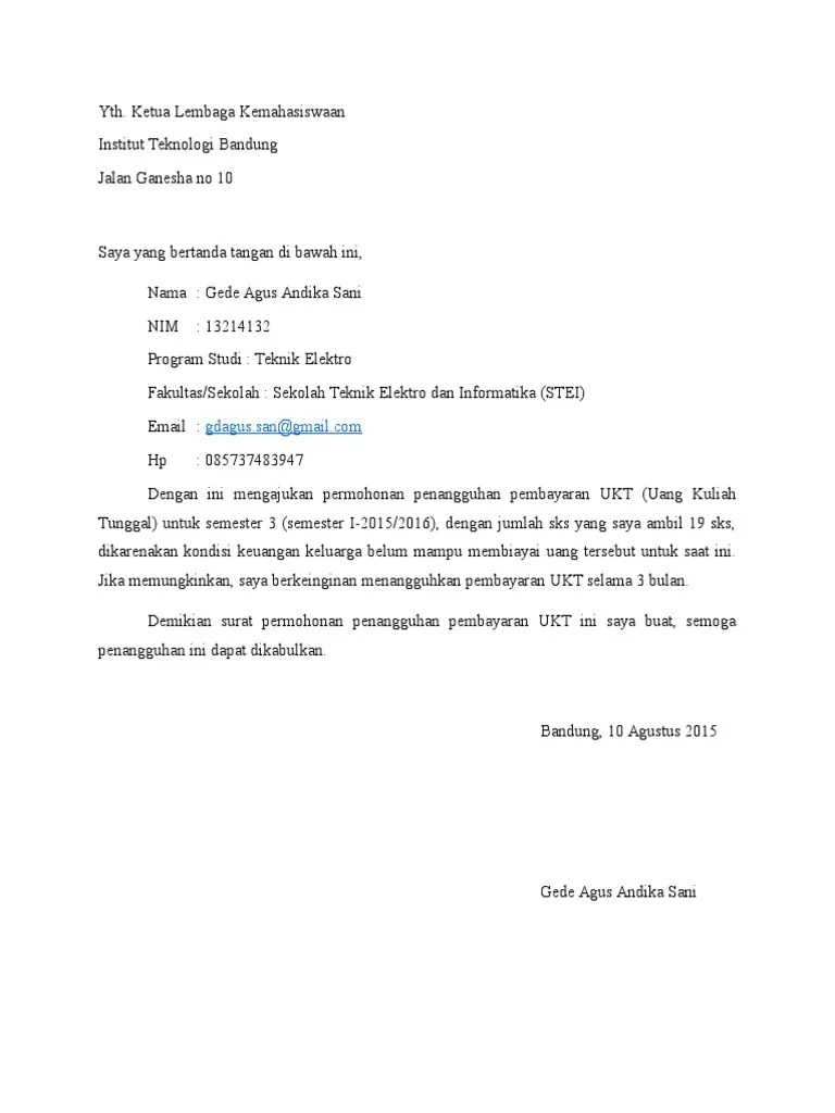 Contoh Surat Permohonan Penangguhan Ukt : Contoh Surat Penundaan Pembayaran Spp Revisi Id : Pasal 2 ayat (4) adalah surat dari mahasiswa yang menyatakan bahwa.
